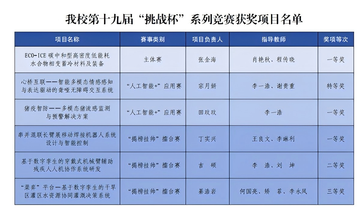 On November 3, the 19th "Challenge Cup" China Mobile National College Students Extracurricular Academic Science and Technology Works Competition successfully concluded at Xianlin Campus of Nanjing University. The event was co-hosted by the Central Committee of the Communist Youth League, the China Association for Science and Technology, the Ministry of Education, the Chinese Academy of Social Sciences, the Chinese Academy of Engineering, the All-China Students' Federation, and the People's Government of Jiangsu Province, and co-organized by Nanjing University and Jiangsu Provincial Committee of the Communist Youth League. ZZULI secured one first prize at the Main Competition; one special prize and one first prize in the Application Contest at the "AI+" Special Competition; and one first prize, one second prize, and one third prize at the Special "Leaderboard Challenge" Competition. Particularly, the special prize in the Application Contest at the "AI+" Special Competition stood as the only one in Henan Province. In the Main Competitionsession, our work titled "ECO-ICE Carbon-Neutral High-Density and Low-Energy Consumption Hydrate Phase-Change Cold Storage Materials and Equipment" received unanimous praise from reviewers during the roadshow and was broadcaston CCTV's Morning News. It also marked ZZULI's best performance since its participation in the Main Competition at the "Challenge Cup" Competition.