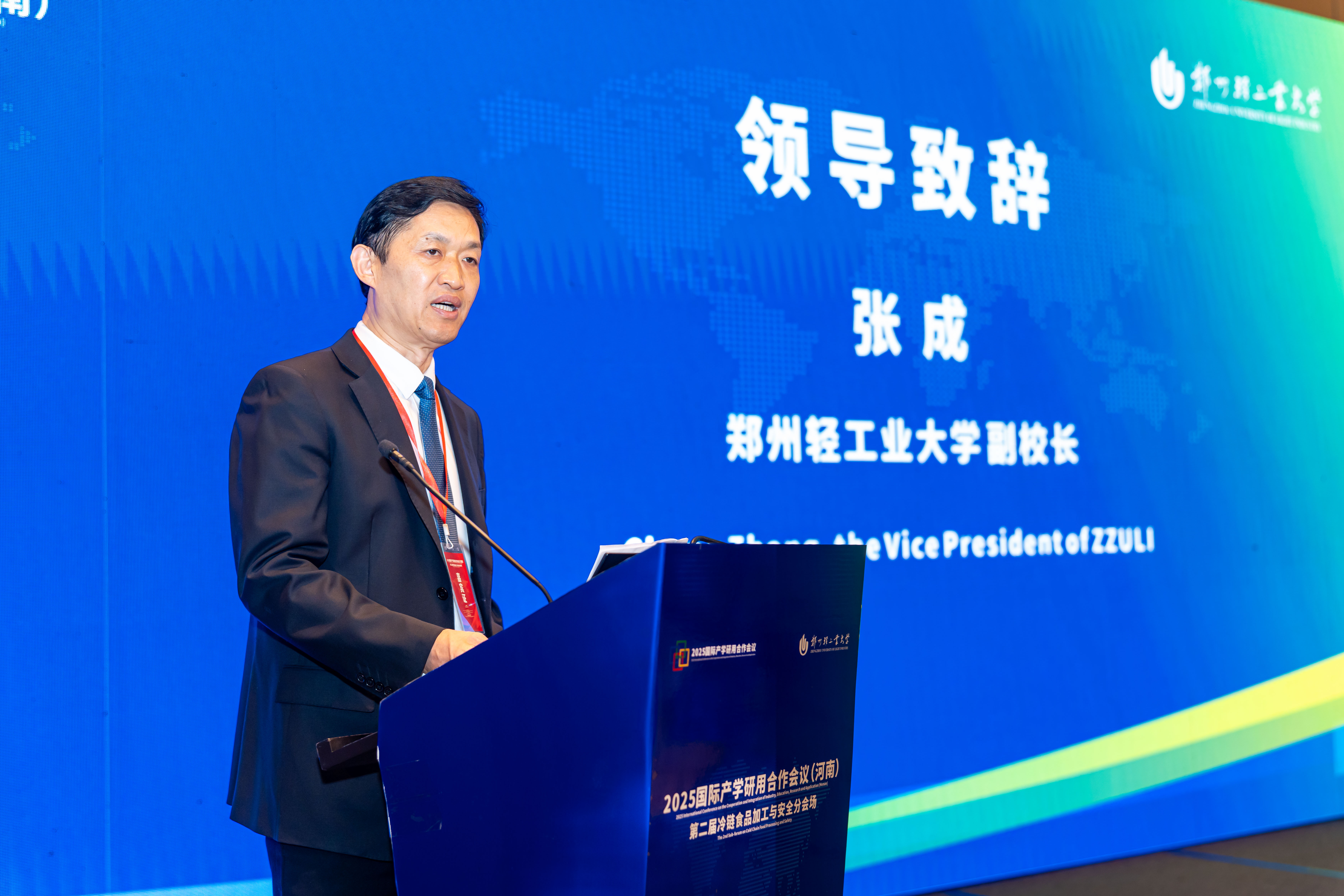 From October 29 to 30, the 2025 International Conference on the Cooperation and Integration of Industry, Education, Research and Application (Henan) - The 2nd Sub-forum on Cold Chain Food Processing and Safety was held in Zhengzhou. Under the guidance of the Ministry of Education and the People's Government of Henan Province, the sub-forum was hosted by the Center for School Development and Planning, Ministry of Education and the Education Department of Henan Province, organized by Zhengzhou University of Light Industry (ZZULI), and co-organized by the Key Laboratory of Cold Chain Food Processing and Safety Control, Ministry of Education (Cultivation) and the National & Local Joint Engineering Research Center of Cereal-Based Foods (Henan). The conference comprised a plenary session and a postgraduate forum. It brought together nearly 200 participants, including experts, scholars as well as faculty and students from universities, research institutions, and enterprises both domestically and internationally. Zhang Cheng, Vice President of ZZULI, attended and addressed the opening ceremony. Prof. Zhang Hua, Dean of the College of Food and Bioengineering of ZZULI, presided over the conference.