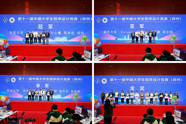 The competition officially kicked off on the morning of November 23. With the joint guarantee of all referees, technicians and volunteers, the competition went smoothly. Each team, consisting of three members, worked collaboratively to solve 13 programming problems within the specified five hours. In the end, Peking University’s team “Fei Dai Bu Zhang Dui” clinched the champion by virtue of accurate algorithm design and steady performance under pressure. Tsinghua University’s team “Escape” and Northeastern University’s team “Northeastern University_He Yi Wei” secured the second and third places, respectively. Additionally, the Contest awarded 25 gold medals, 50 silver medals, and 75 bronze medals.