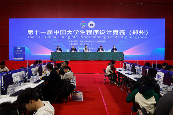 From November 22 to 23, the11th China Collegiate Programming Contest (CCPC) Zhengzhou was successfully held at Zhengzhou University of Light Industry (ZZULI). The Contest was hosted by the CCPC Organizing Committee and organized by ZZULI. The event attracted 311 teams, comprising nearly a thousand students and faculty members from over 190 universities, including Tsinghua University and Peking University. The opening ceremony was attended by Liu Chunying, Deputy Secretary-General of the CCPC Organizing Committee and Coach of Hangzhou Dianzi University, Gan Yong, President of the Research Association of Computer Education in Colleges and Universities of Henan Province, and Zhou Liming, Vice President of Zhengzhou University of Light Industry.