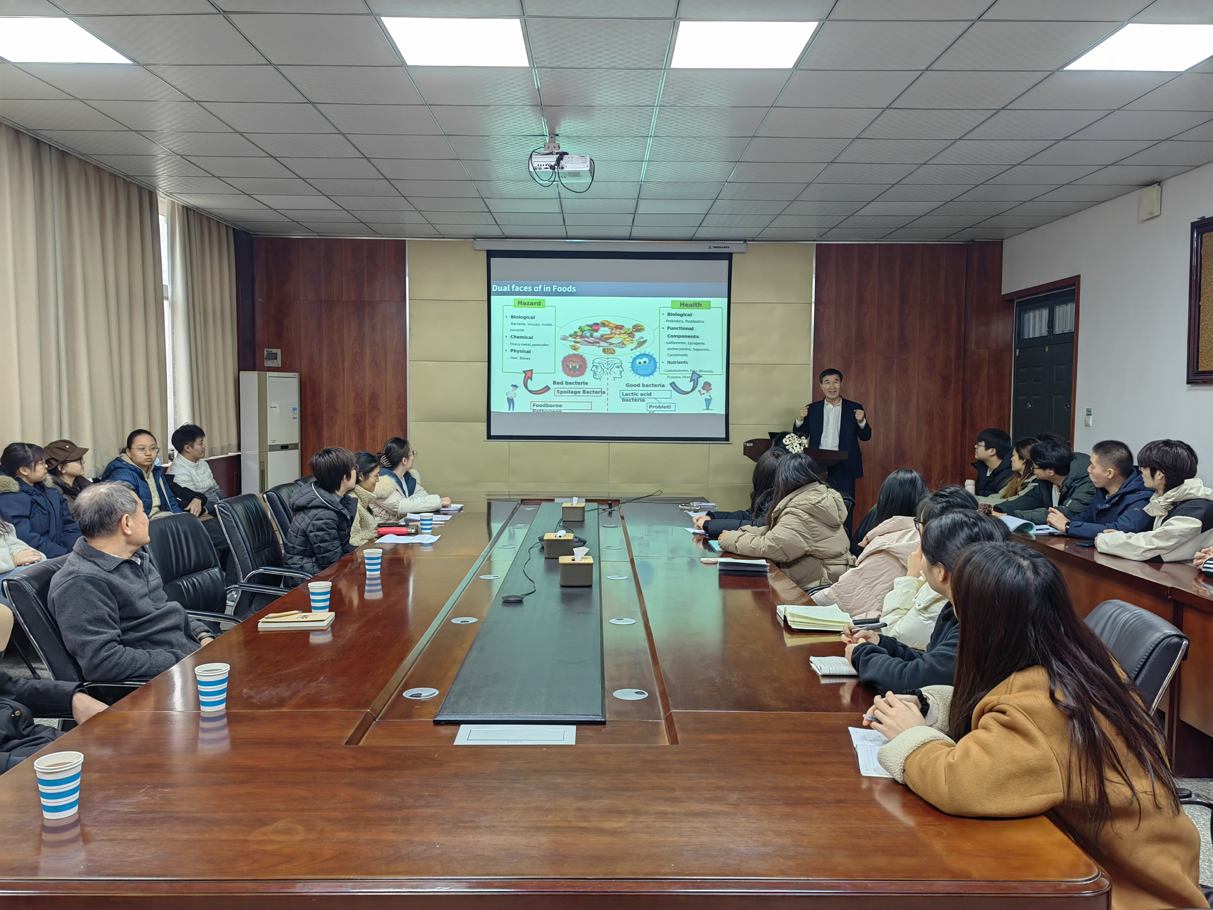 Professor Deog-Hwan Oh's presentation, titled "Microbial Approaches to Food Safety and Health Promotion", introduces the current status of foodborne pathogens and green safety control measures. It elucidated the pathogenic mechanisms of foodborne pathogens, drawing on the application scenarios of physical and chemical intervention technologies. Furthermore, it introduced related electrolytic preparation and rapid detection technologies, establishing a new technical approach for the precise prevention and control of foodborne pathogens. In addition, Professor Deog-Hwan Oh engaged in a discussion with faculty and students of the College on the positive role of probiotics and their metabolites in regulating intestinal microecological balance to strengthen the body's immune barrier and prevent chronic metabolic diseases. This exchange has promoted international exchanges and cooperation for the College, and holds positive significance for enhancing the academic influence of food science and engineering.