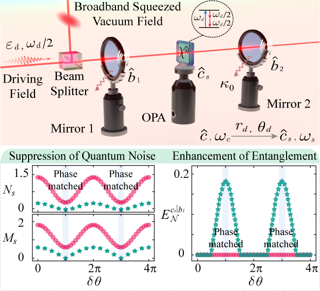 Dr. Jiao Yafeng proposed a theoretical scheme for preparing quantum entangled states of macroscopic mechanical oscillators and enhancing coherence based on a squeezed cavity optomechanical system. Under existing experimental conditions of weak optomechanical coupling, by synergistically utilizing intracavity squeezing generated by an optical parametric amplifier (OPA) and externally injected broadband squeezed vacuum fields, the scheme not only significantly enhances the optomechanical coupling strength of the cavity optomechanical system but also effectively suppresses the environmental heating effect induced by the OPA, thereby achieving substantial improvements in both coherence and robustness of multipartite mechanical oscillator entangled states. This research, titled "Tripartite Quantum Entanglement with Squeezed Optomechanics," was published in Laser & Photonics Reviews (CAS Q1, Impact Factor 9.8), a top-tier journal in applied physics. Dr. Jiao Yafeng currently leads one National Natural Science Foundation of China Youth Project and one Henan Province Outstanding Youth Foundation Project. Journal article link: https://onlinelibrary.wiley.com/doi/abs/10.1002/lpor.202301154